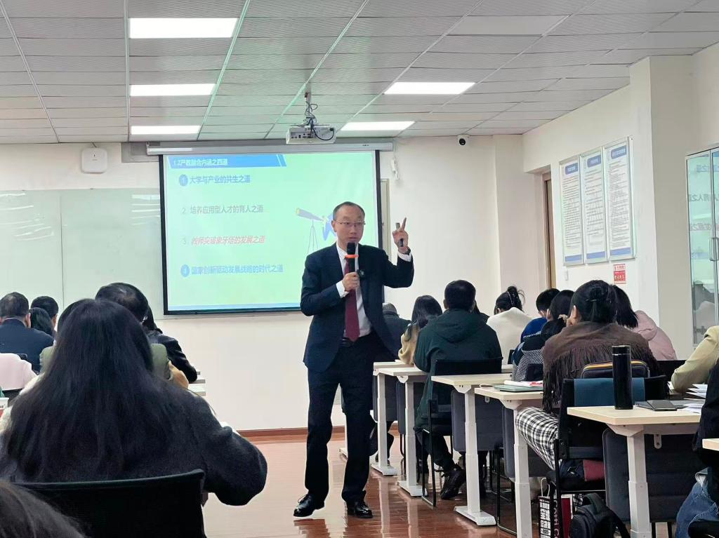 何亮教授以“时代之问与教育变革”为切入点,抛出一系列引人深思的问题:“我们的教育质量怎样?”“学校发展态势如何?”“教师是否深入企业?”他指出,面对新时代对高素质应用型人才的迫切渴求,产教融合已成为高校转型发展的必由之径。