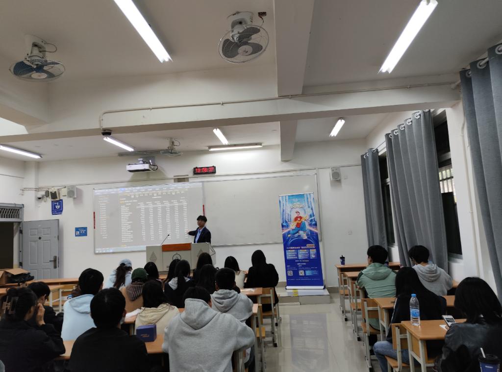 讲座伊始,邓明煜以“无风险利率下行与居民财富再配置”开篇,用“十年期国债收益率跌破2%”这一最新数据迅速抓住同学们的注意力。随后,他展示国泰海通自主研发的“利率—风险偏好—估值”三维打分模型,现场演示如何借助Python接口实时抓取30年期国债收益率、两融余额、ETF申赎数据,并实操完成一次“股债性价比”更新,引得台下同学纷纷举起手机拍照记录。互动环节,同学们就“量化策略失效速度”“如何平衡模型复杂度与过拟合”“AI是否会取代分析师”等踊跃提问。