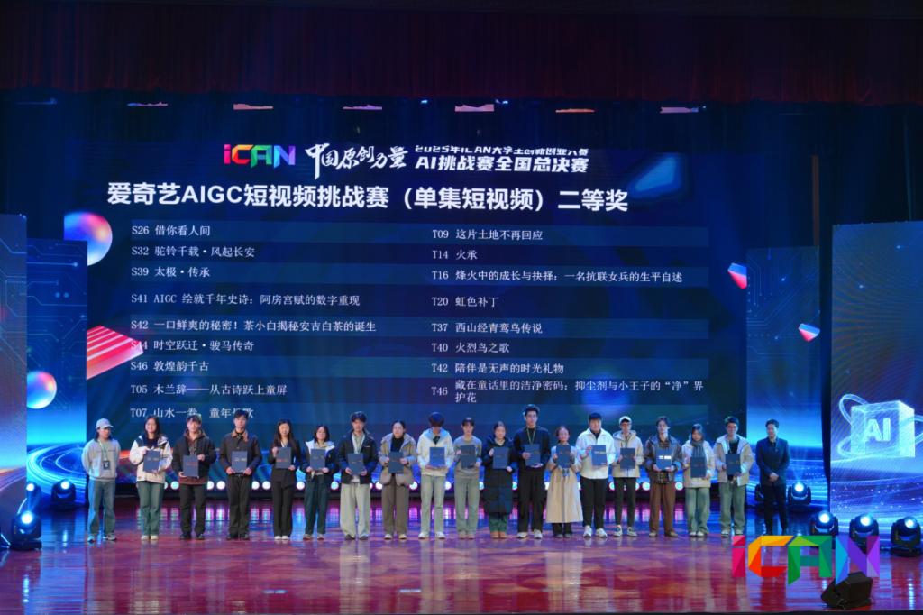 作为列入全国普通高校大学生竞赛目录的权威赛事,iCAN大赛始终以“自信、坚持、梦想”为核心理念,是检验高校人才培养质量的重要平台。本届AI挑战赛聚焦人工智能技术的前沿应用,设立“AI应用创新挑战赛”与“爱奇艺AIGC短视频挑战赛”两大赛道,吸引了全国300余所高校参与,经过层层选拔和激烈竞争,898支队伍晋级总决赛。我院两支团队在激烈竞争中崭露头角,体现了学生从理论到实践、从创意到成品的完整创新能力。