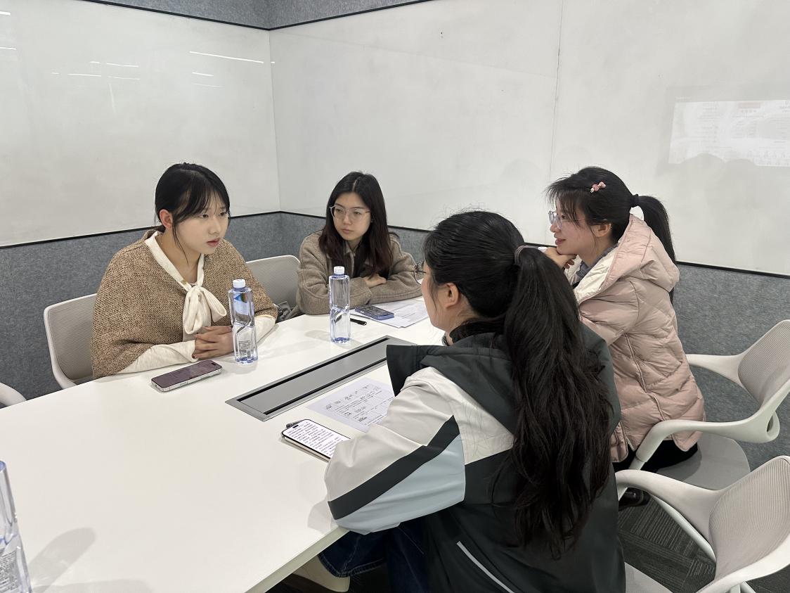在随后举行的实习生座谈会上,老师们详细询问了每位同学的实习内容、生活保障及毕业论文撰写情况。“从校园到职场,最大的挑战是什么?”“实际工作与在校学习的内容有哪些差异?”老师们一句句贴心的问候,让同学们倍感温暖。同学们踊跃分享了在不同岗位上的实践心得,有的接触到了金融服务与人力资源服务的交叉领域,有的在保险一线岗位上积累了宝贵经验。