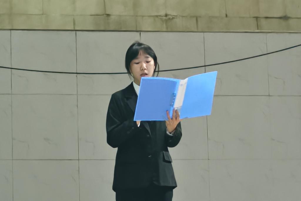 财管2308班赵语馨同学作为现代商学院团学学生干部代表,以《擎旗笃行向朝阳,不负韶华勇担当》为题展开演讲。她围绕“个人理想”与“国家发展”的内在联系展开论述,深刻阐释了新时代青年应当将个人理想融入国家发展蓝图中的使命担当。她谈到,“擎旗”就是要始终高举爱国旗帜,厚植家国情怀,“笃行”就是要扎实掌握专业知识,锤炼过硬本领。同时,她呼吁全体同学在日常学习与实践中磨砺意志、增长才干,用奋斗书写无愧于时代的青春答卷。