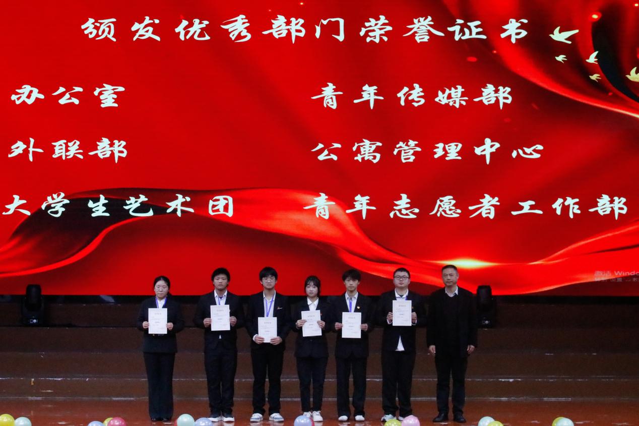 大会对本学期表现突出的先进集体与个人进行了表彰,先后颁发了优秀志愿者、优秀工作者、优秀干事、优秀部长及优秀部门等多项荣誉称号,以榜样的力量激发奋进动力。